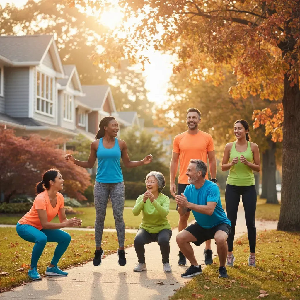 Transform your regular walk into a community fitness adventure. Gather 3-5 neighbors for a 20-30 minute walk around your area, but here's the twist – make planned stops every few blocks for quick exercises.
