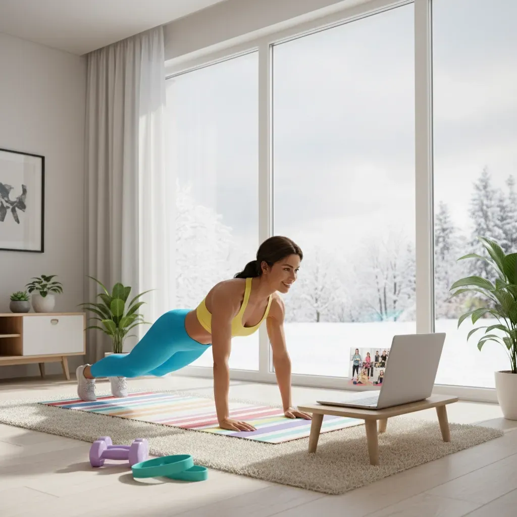 Create a winter workout space at home. Even if it's just a yoga mat and some resistance bands in the corner of your bedroom, having a designated space removes barriers on the worst weather days.